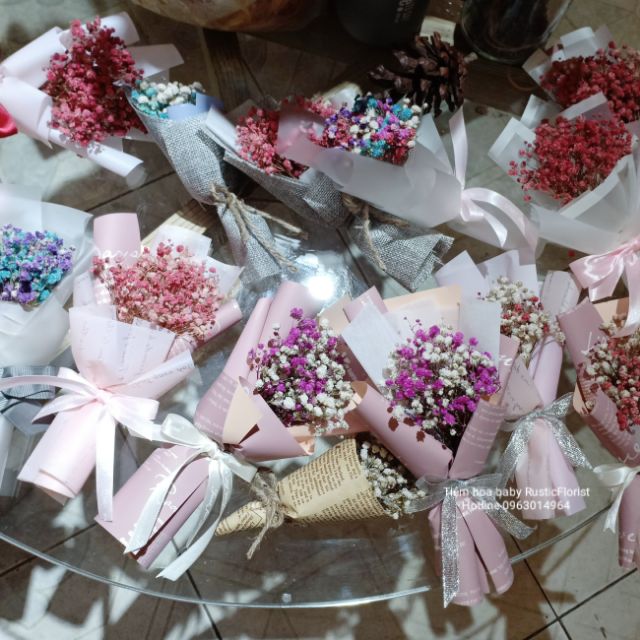 Giảm giá [ HOA KHÔ ] Bó hoa baby khô mini vintage làm decor chụp ảnh, tặng kèm hộp quà,trang trí còn 28,500đ
